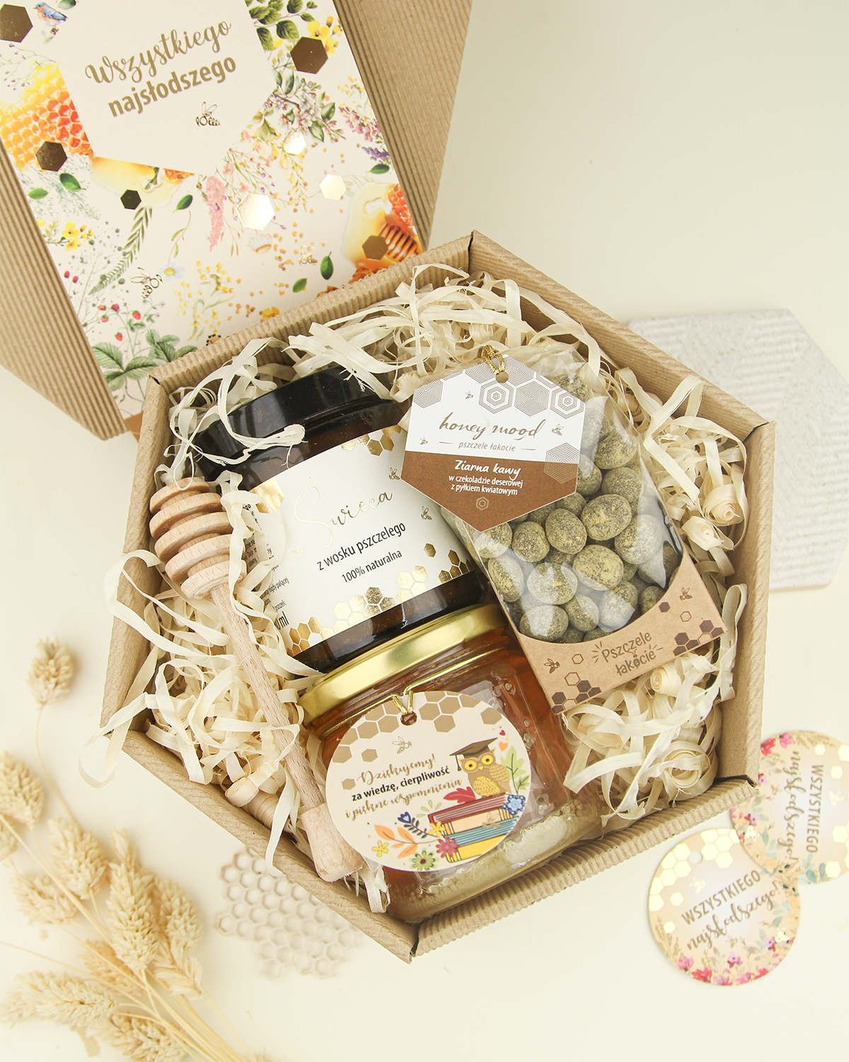 Naturalne produkty pszczele – miód, świece z wosku pszczelego czy gotowe zestawy prezentowe – to piękny i symboliczny sposób, by wyrazić wdzięczność, miłość i szacunek.