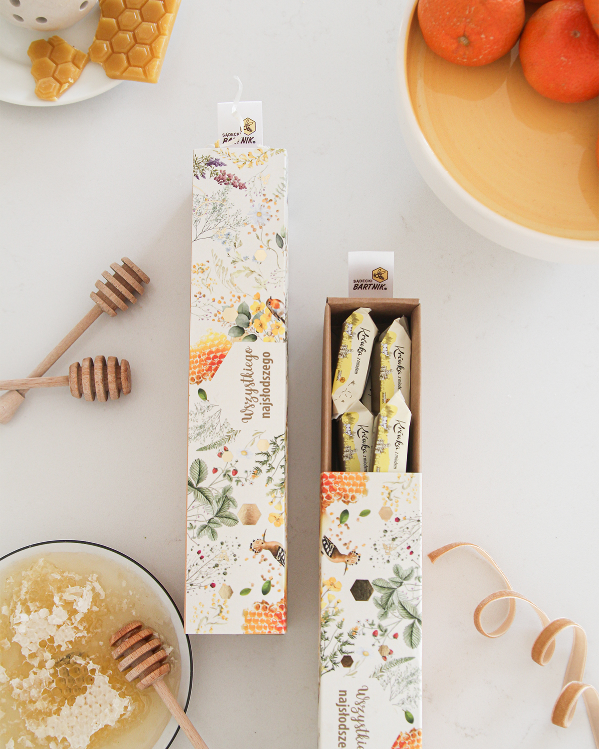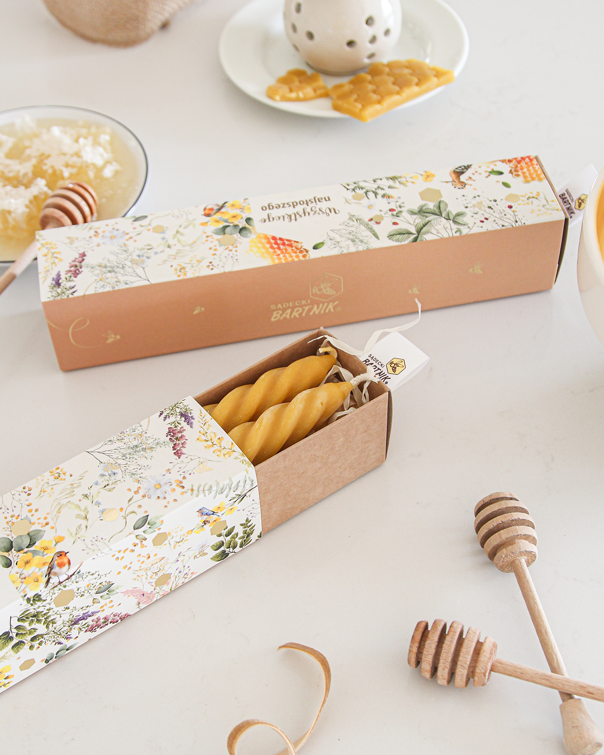 Naturalny miód, świeca z wosku pszczelego czy elegancki zestaw prezentowy to symbol ciepła, światła i troski.